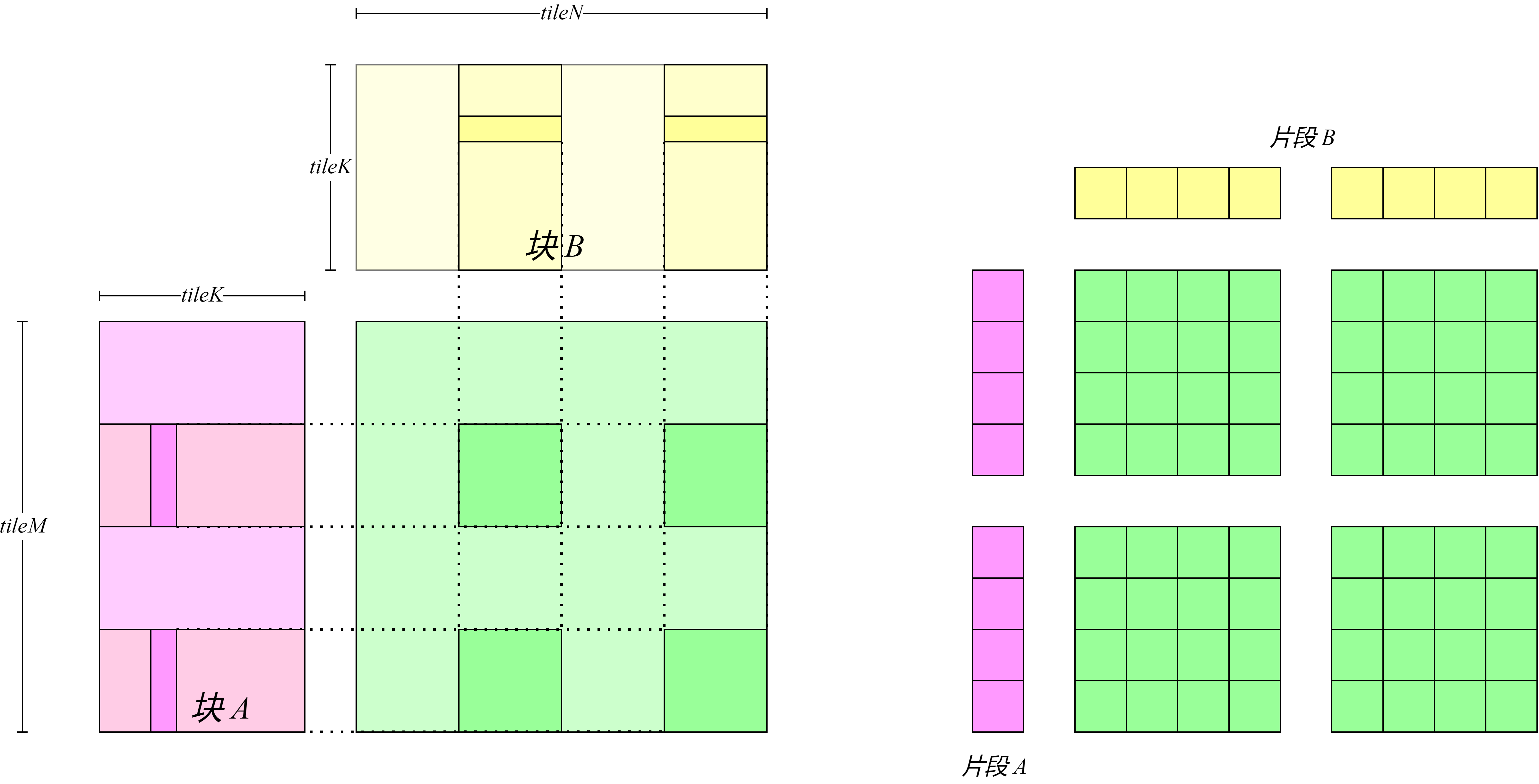 数据,这就要求现在每个线程负责处理矩阵\(C\)中\(4\times 4\)的矩阵块,称之为
