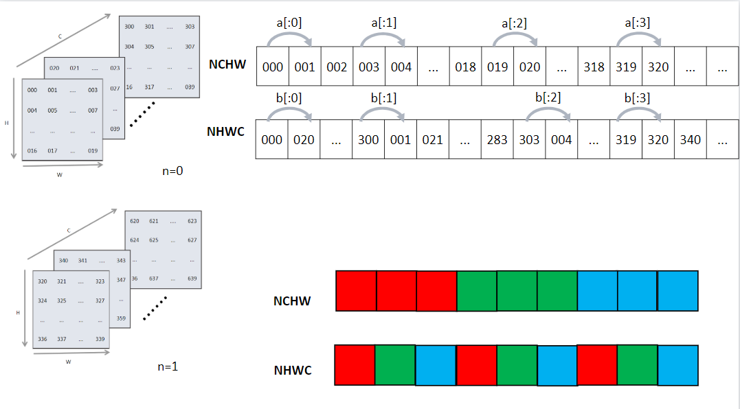 图7.3.4 NCHW与NHWC数据存储格式¶